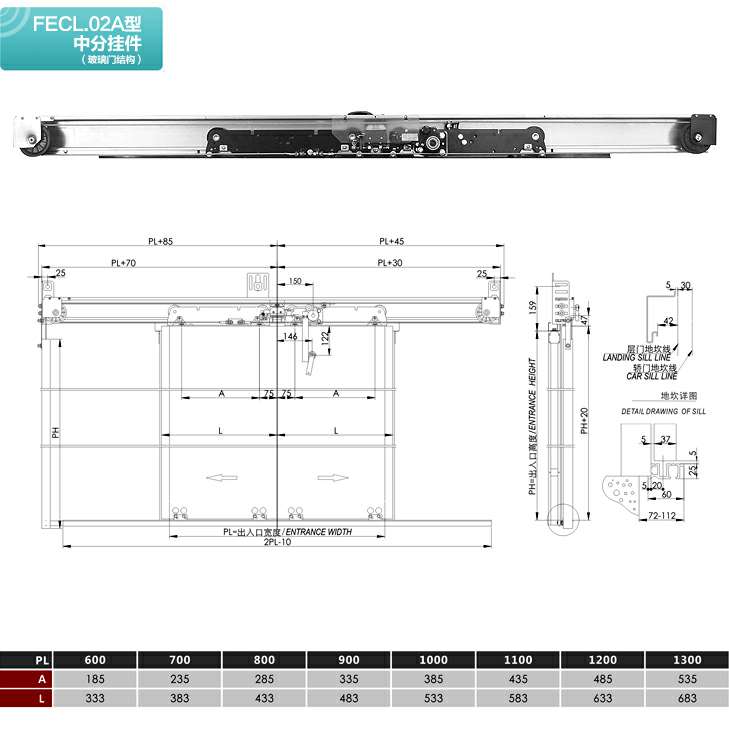 FECL.02A型中分层门装置(玻璃门结构)